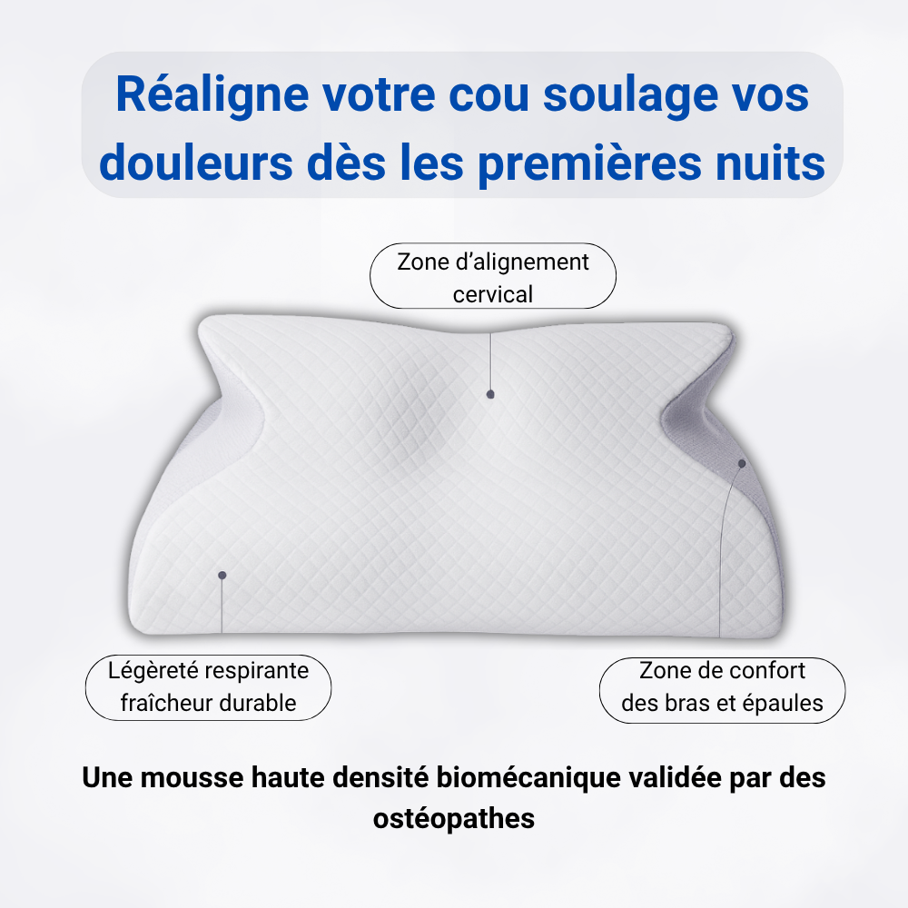 La mousse AligniaCore™ s’adapte à vos cervicales en quelques nuits pour restaurer l’alignement naturel.