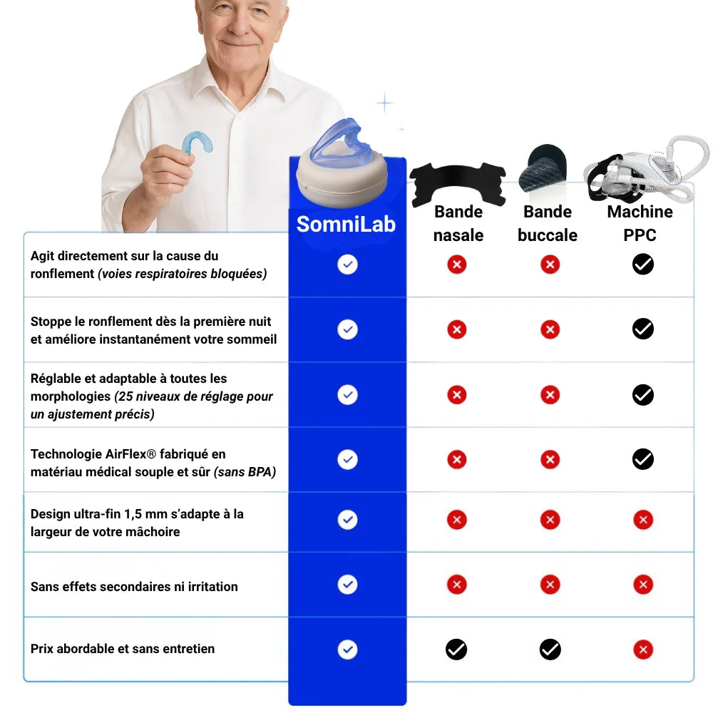 Parce que SomniLab™ agit à la source du problème, sans machine, sans médicament et sans gêne.